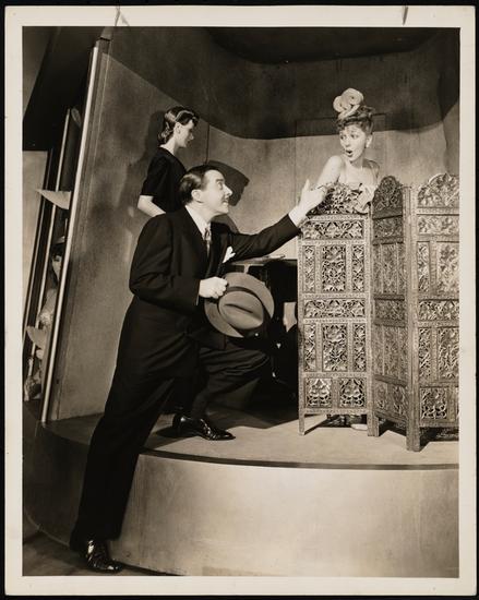 [Harry Clark as Stanley, Paula Laurence as Molly Grant, Teddy Hart as Taxi Black and John Boles as Whitelaw Savory in "One Touch of Venus".]
