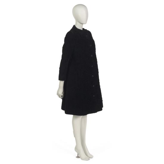 Dinner ensemble in black silk velvet comprising dress and jacket