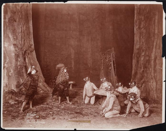 [May Blaney as the Hen Pheasant and Maude Adams in the title role of "Chantecler".]