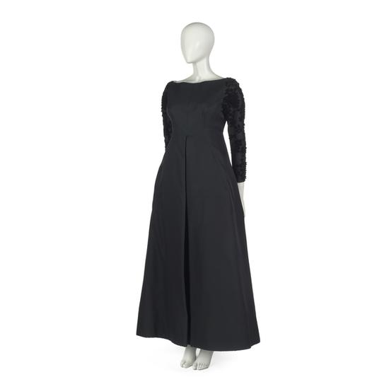 Dinner ensemble in black silk velvet comprising dress and jacket