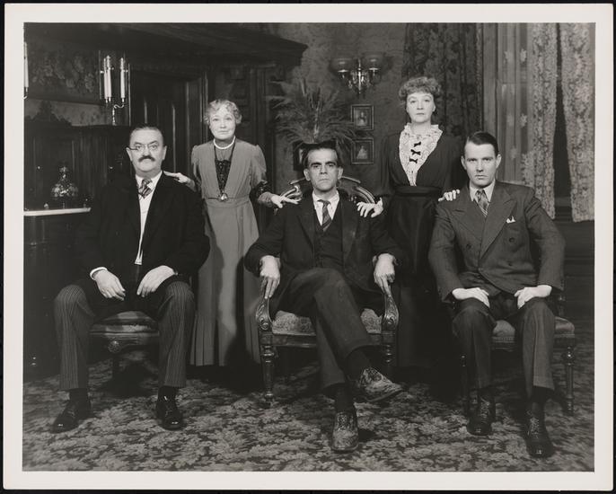 [Josephine Hull as Abby Brewster, Jean Adair as Martha Brewster and Boris Karloff as Jonathan Brewster in "Arsenic and Old Lace".]
