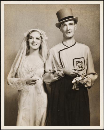 [Marilyn Miller as Joan Crawford and Cllifton Webb as Douglas Fairbanks Jr. in "Joan Crawford to Divorce Douglas Fairbanks, Jr." scene in "As Thousands Cheer".]