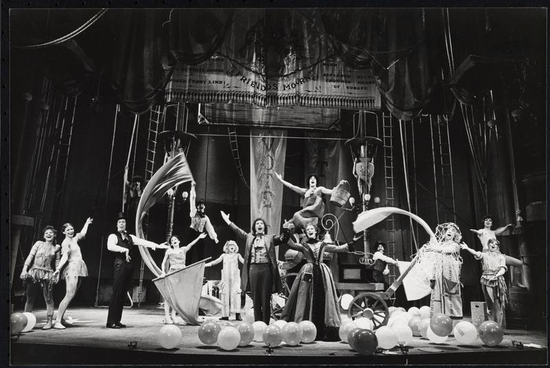 [Barbara Nadel as Lady Juggler, Edward T. Jacobs as Chief Bricklayer, Glenn Close as Mrs. Barnum and Jim Dale as the title role in "Barnum".]