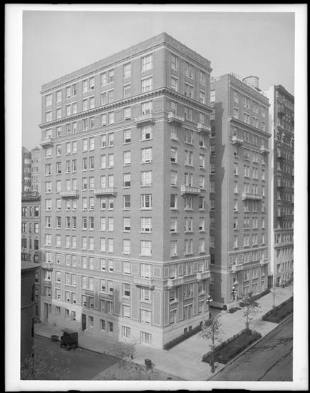 104th Street at the N.W. corner of West End Avenue. Apartment house.