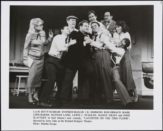 [Lewis J. Stadlen as Milt, Stephen Mailer as Lucas and Mark Linn-Baker as Val in "Laughter on the 23rd Floor".]
