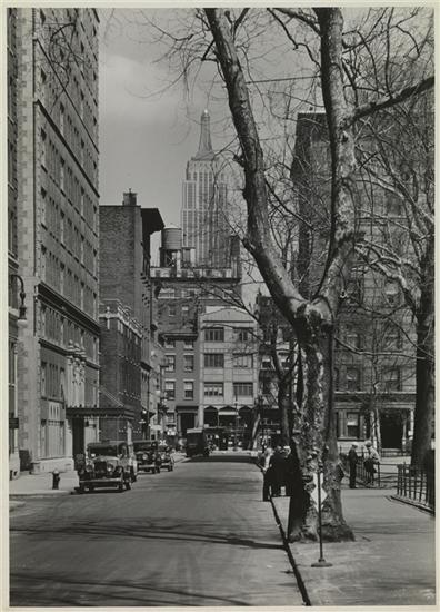 New York City views. Empire State [Building] from MacDougal Street.