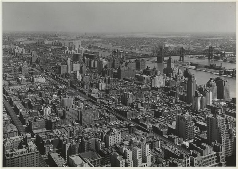 Views from 80th Street and East River. View northeast, Welfare Island and Hell Gate Bridge vertical.