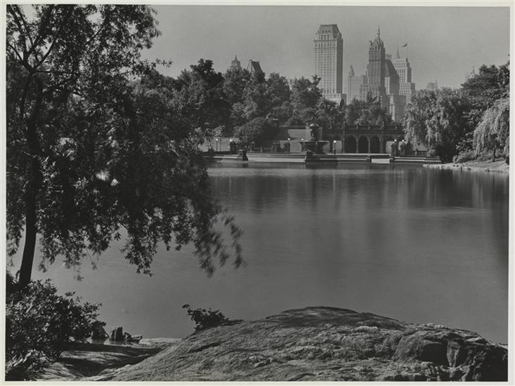 [Facing south over the Central Park Lake to Midtown Manhattan]