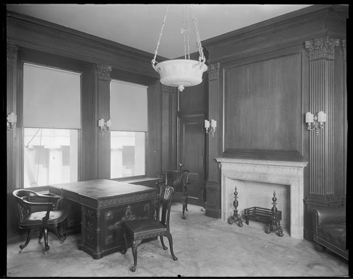 J.P. Morgan Bank. View of mantelpiece in a private office.