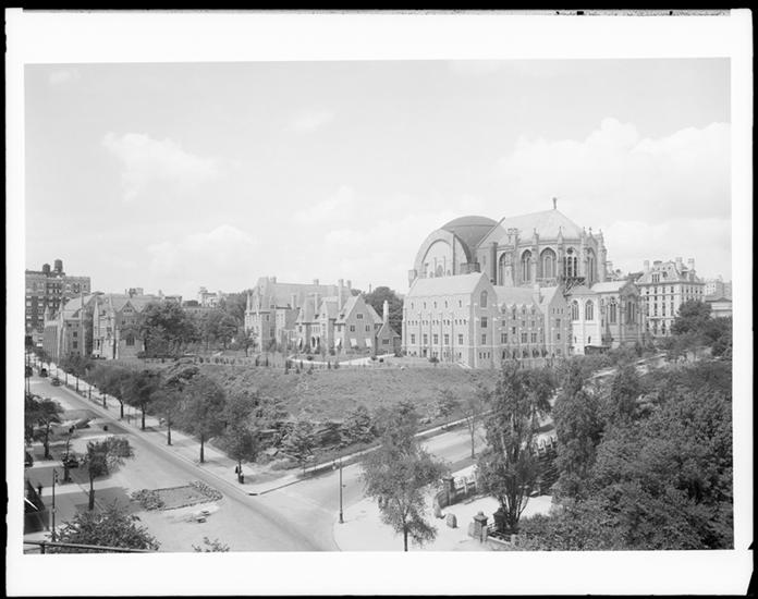 Amsterdam Avenue and 112th Street. Cathedral of St. John the Divine, bird's-eye view.