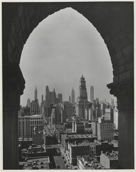 New York City views. View through loggia arch of Barbizon Hotel, 1.