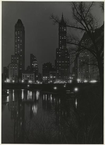 Sherry Netherland, Savoy Plaza Skyline from Central Park. From Hill at 85th Street. From Ritz to Plaza Skyline.
