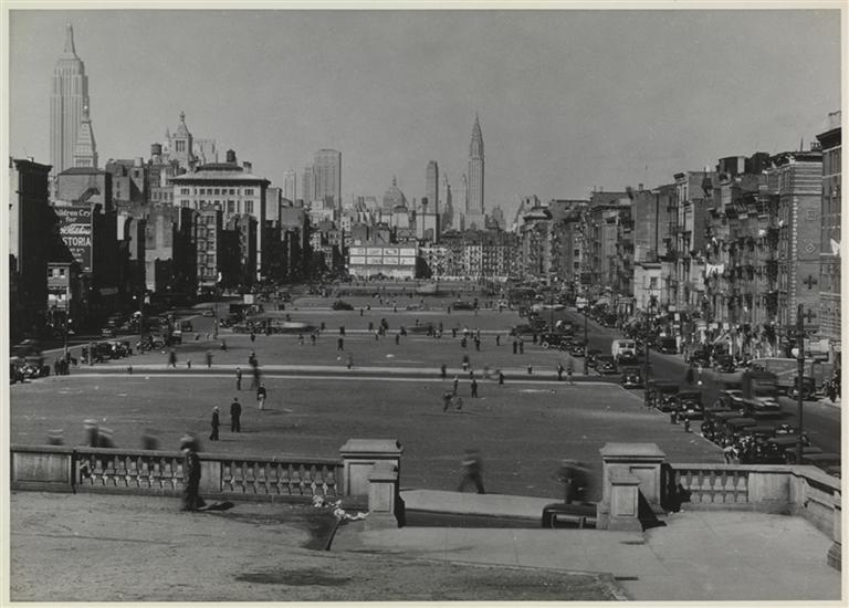New York City views. Open plaza toward midtown at Canal Street taken on bridge.