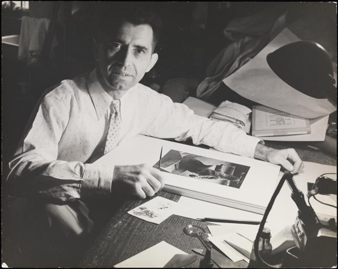 View of [John Albok's] tailor shop at 1392 Madison Avenue with billboard of "John Albok's New York"