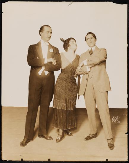 [Joseph Allen as Bagshott, Juliette Day as Jennie Wren and Roy Atwell as Broadway Willie Burbank in "Oh, My Dear!".]