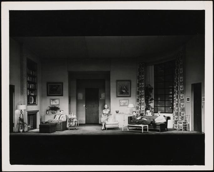 [Barry Nelson as Bob McKellaway, Michael Rennie as Dirk Winsten and Barbara Bel Geddes as Mary McKellaway in "Mary, Mary".]