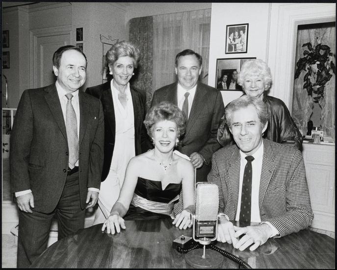 [Tex McCrary, Holland Taylor, Pegeen Fitzgerald and Keith Charles on the set of "Breakfast with Les and Bess".]