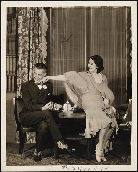 [Alfred Lunt as Harry Van and Lynn Fontanne as Irene in "Idiot's Delight".]