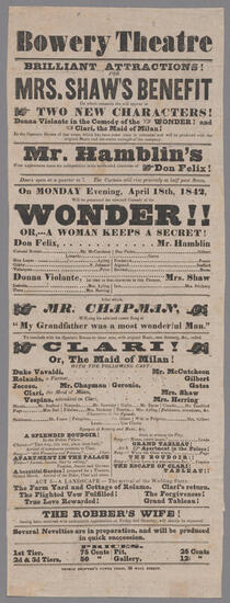 On Saturday evening, July 9, 1842, will be presented the Hibernian drama of "Brian Boroihme; or, The Maid of Erin"