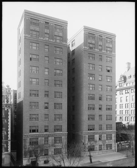 [Apartment building at the intersection of Riverside Drive and West 110th Street.]