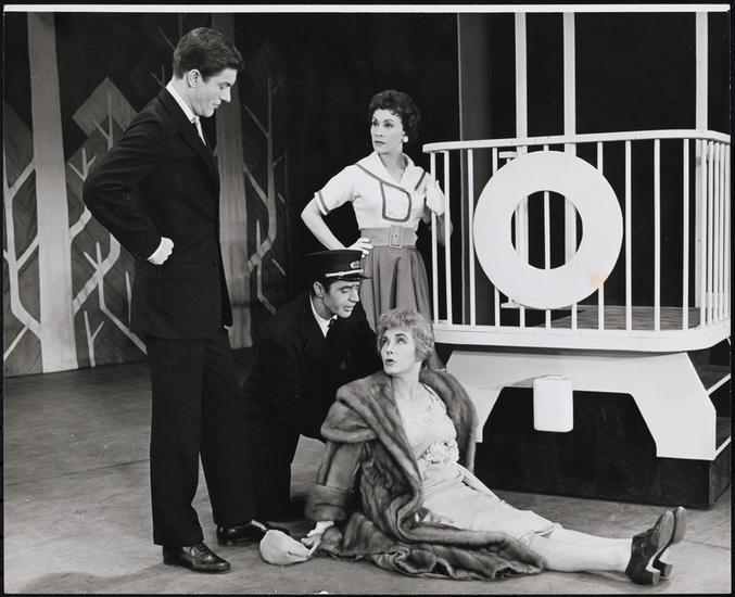 [Chita Rivera as Rose Grant, Kay Medford as Mae Peterson, and Dick Van Dyke as Albert Peterson in "Bye Bye Birdie".]