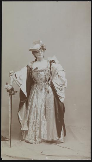 [Hyde Ball, Madame Rejane in Garden of Versailles.]