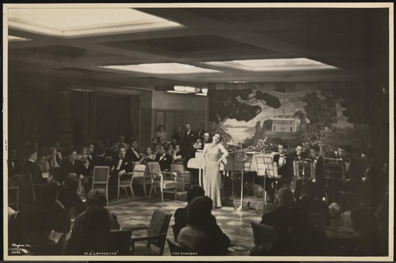 French Line, M.S. "Lafayette", Interior, Cabin Class, Starboard Side of Music Salon.
