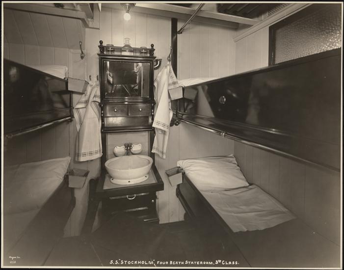 Swedish American Line, S.S. "Drottningholm", Third Class, Interior, Stateroom #E 535.