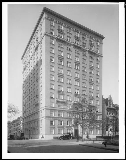 104th Street at the N.W. corner of West End Avenue. Apartment house.