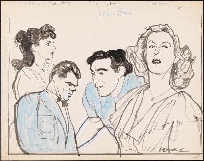[Charles Halton as Mr. Corliss, Uta Hagen as Vickie Roberts, and Jose Ferrer as George Roberts in "Vickie".]