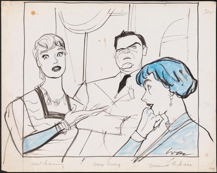 [Edith Adams as Eileen Sherwood, George Gaynes as Robert Baker and Carol Channing as Ruth Sherwood in "Wonderful Town".]
