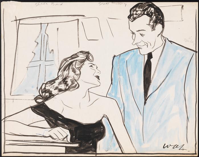 [Scott McKay as Leo Mack and Sheila Bond as Ursula Poe in "The Live Wire".]
