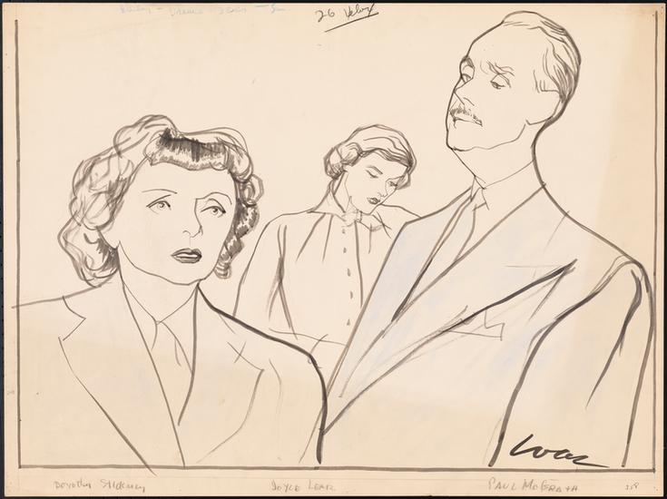 [Paul McGrath as Mr. Benton, Tod Andrews as Bill and Janet Blair as Jennifer Goodall in "A Girl Can Tell".]