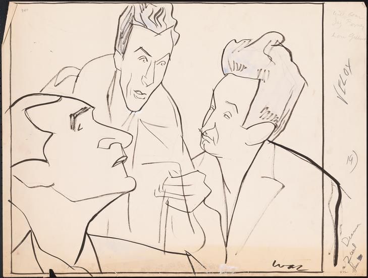 [Walter Gilbert as Wells Carter, Mayo Jane Methot as Dixie Potter, and Doris Packer as Peaches Moran in "Strip Girl".]