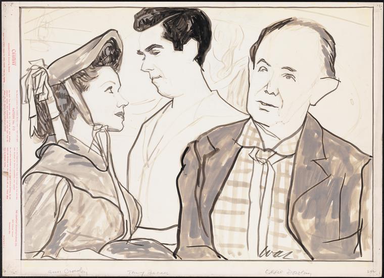 [Ann Crowley as Jennifer Rumson, Mary Burr as a dancer and Eddie Dowling as Ben Rumson in "Paint Your Wagon".]