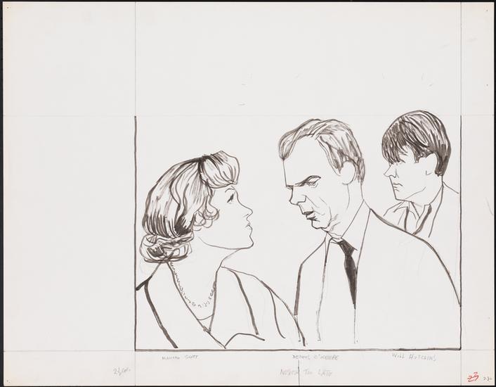 [Paul Ford as Harry Lambert, Maureen O'Sullivan as Edith Lambert and Orson Bean as Charlie in "Never Too Late".]