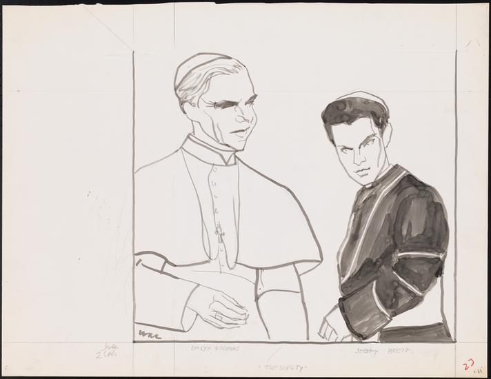 [Emlyn Williams as Izquierdo, William Redfield in the title role and John Abbott as Juan Salcedo Alvarez in "Montserrat".]