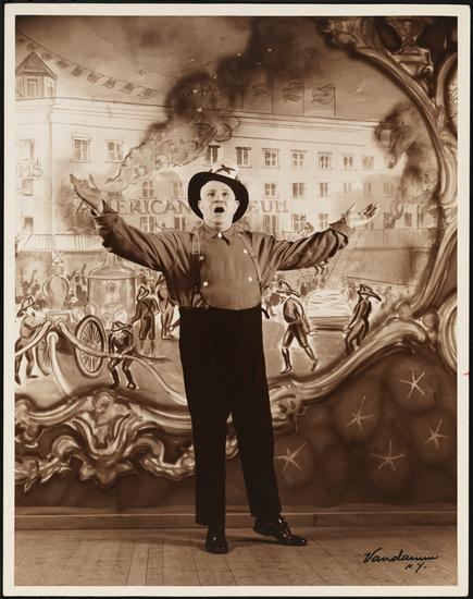 [Jimmie Durante as Claudius B. Bowers and Big Rosie in the title role of "Jumbo".]