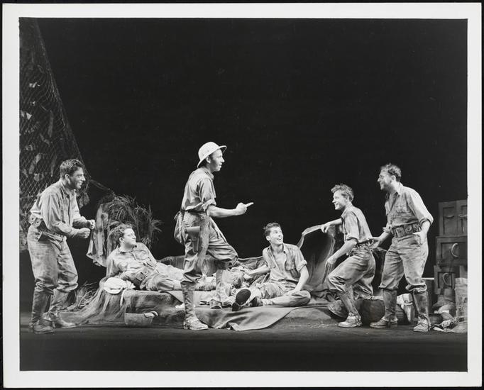 [Charles Mendick as Corporal Tate, David Pressman as Private Shevlin and Eddie O'Shea as Private Thomas Mulveroy in "The Eve of St. Mark".]
