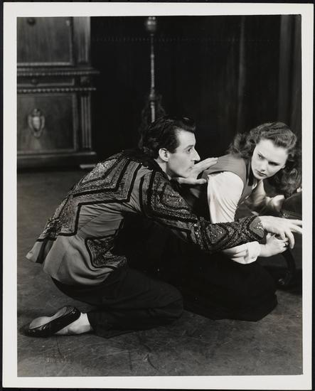 [Colin Keith- Johnston as Aubrey Stewart, Bethel Leslie as Madeline Krainine and Luis Van Rooten as The Inspector in "The Dancer".]