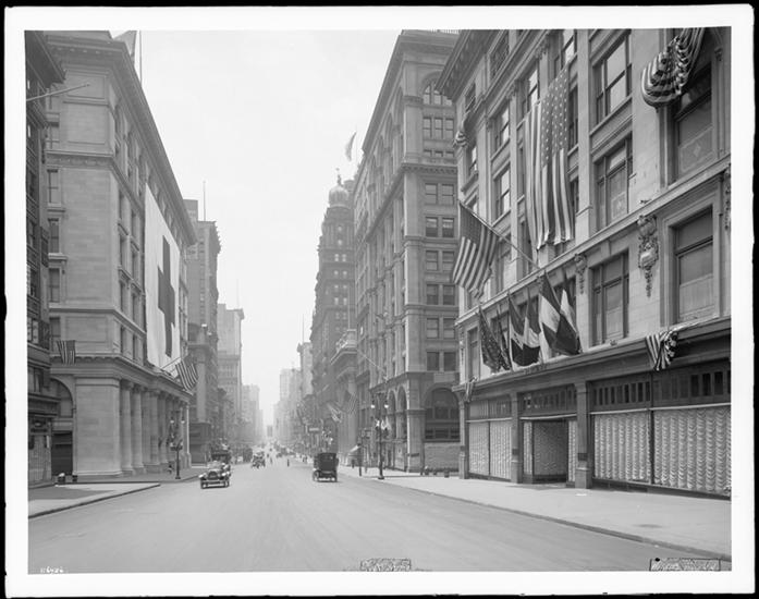 5th Avenue looking north from 33rd Street. Japanese War Commission, banquet hall exterior.