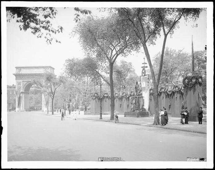 [Washington Square. Garibaldi statue, decorated for Italian War Commission parade.]