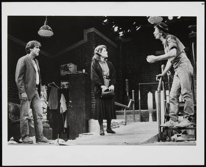 [Christine Estabrook as Maggy Burke, Tom Bloom as George Ferguson and Paul O'Brien as Archie Crisp in "The Widow's Blind Date".]