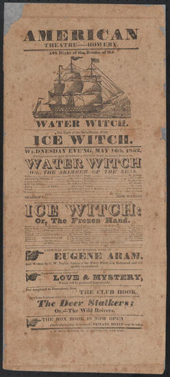 On Thursday evening, April 16, 1835, will be presented the nautical melodrama called "The Wizard Skiff; or, the Tongueless Pirate Boy"