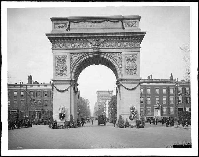 Washington Arch looking south. [Mayor's Committee to Welcome British & French War Commissions.]