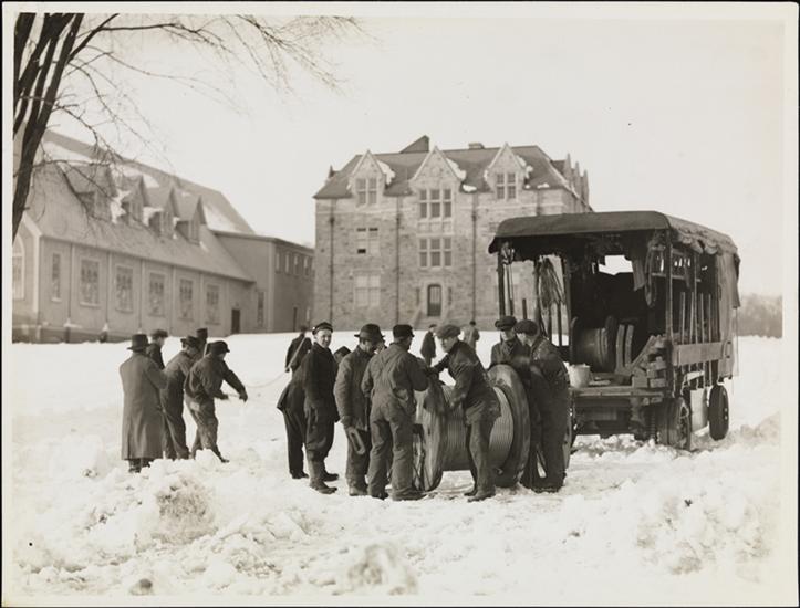 [People climbing aboard cable car marked B'way & 242nd St.]