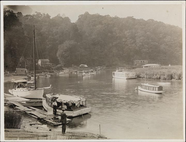 Rogers Estate, "Port of Missing Men," Southampton, L.I., Exterior, Waterfront of Swimming Pool and Library Buildings.