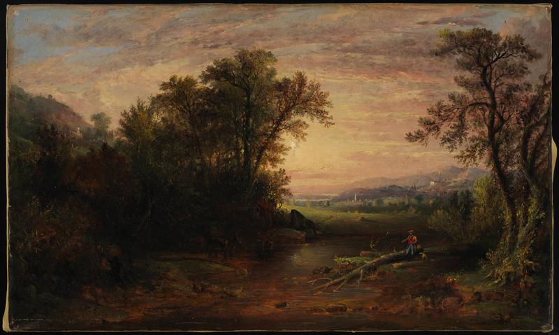 Brisé fan with painted and lacquered Rococo-style pastoral scene