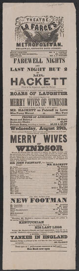 Mr. Hackett, second night of his farewell engagement, as Sir John Falstaff in "The Merry Wives of Windsor", Wednesday evening, October 30
