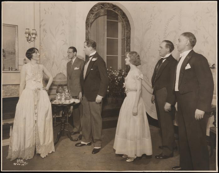[William B. Mack as Brigham Kemble, Howard M. Stuart as Lorenzo, Chrystal Herne as Zina and Pauline Curley as Rhoda in "Polygamy".]